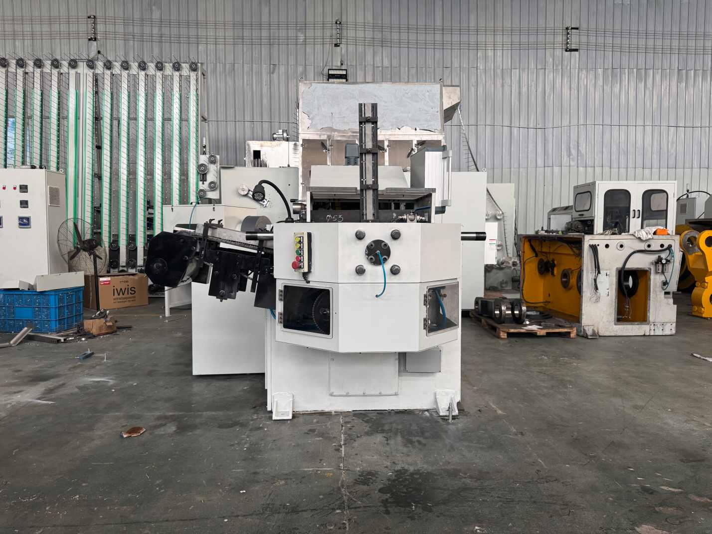 The clearance between body of punch and die controls pipe thickness. Through the annular slot between the carbide ring and tip of punch, the slugs are pressed and turned into germ tubes, the extruded part is automatically unloaded to the out feed conveyor which transfers the product to next operation stage.